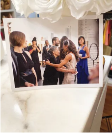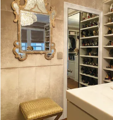 “If you look closely, there are places in the frame that have been broken and put back together. I think that’s my favorite part about it. The designer we worked with, Brigette Romanek, found it. Her sense of style is unbelievable. I really liked the subtle pink, gold, and cream tones.”