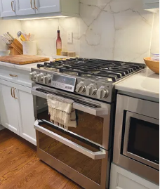 “I’m a huge cook and baker. So, to have a range like this—I had never had one my whole time in New York City—is amazing. Now I can bake things at different temperatures, for different times, and there’s a center attachment for grilling. It does so many things and it really makes me step outside of my comfort zone, which has been especially great during this time.”